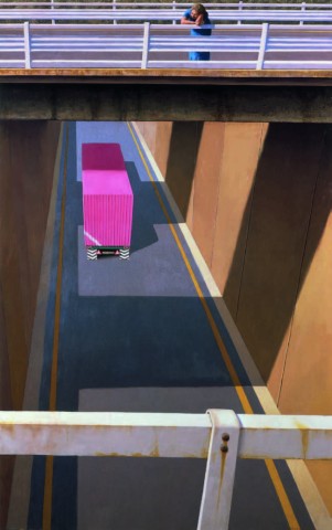 Like the best of Smart’s achievements, The Footbridge beguiles both the eye and mind its ambiguity, remaining infinitely suggestive but revealing nothing. Although his works have frequently been construed as bleak, Hopper-esque commentaries on a society alienated by technology or a world impoverished by mass-produced architecture, such pessimistic interpretations would seem to negate Smart’s own professed intentions for his art. For, as Barry Pearce elucidates, his paintings ‘…are, at the end of the day, expressions of himself. Container trucks which pollute cities, highways which have displaced communities, and modulised buildings which have absolved individuals from caring about each other are not in themselves beautiful. They cannot be, except that from the tranquillity of his eighteenth-century farm in Tuscany, Smart has made them beautiful by extracting time and noise and pain.’10 Relentlessly asserting his faith in the timeless beauty he perceives amidst the clutter of contemporary life, Smart’s paintings convey rather, a rich sense of optimism despite their occasional uncertainties – a poignant reminder that the things which seem upon first glance to reflect a brutality to the soul can become, ironically, a source of wonder.11 As Quartermaine ultimately reiterates, ‘…Smart’s paintings are not to be looked through but looked at. If we look through them, we find only the preconceptions we brought with us – by looking at them with the attention they demand we can experience their world.’12