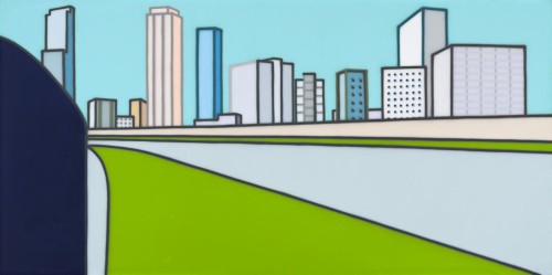 While Arkley executed a number of paintings based on the freeway, most of them lack the level of intimacy of A Freeway Painting (Exit). And despite the fact that this is a massively-scaled, museum-quality work, it is tempting to pull up the couch and join Arkley as we turn left and avoid the rat-race of the impending metropolis and drive into the shady back streets of his suburbia.