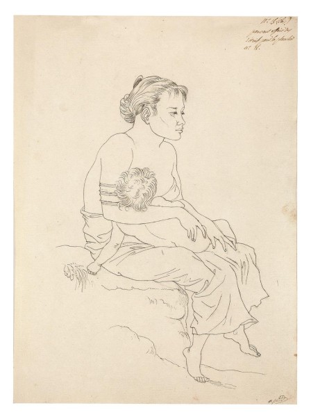 As with many of the Petit sketches this bears marks of the process by which drawings were considered for engraving for publication. Although this image does not appear in the official account and is not known to have been engraved, the note at the top by Péron in his typical sepia ink, which reads “No. 15 (bis) pouvant offrir des détails pour la planche No. 15”, shows that it may have been consulted for use of detail in another image which ultimately may not have been used in the publication. Similar notes appear on drawings lots 2, 12 and 13.