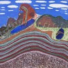 Ginger Riley’s painting recalls his mother’s country; the landscape and mythology relating to the coastal salt-water area adjacent to the Limmen Bight River some fifty kilometres inland from the south-western corner of the Gulf of Carpentaria. His paintings, characterised by a bold use of colour and the recurrence of certain motifs, can be viewed as a sequence of variations upon the same theme. The most often recurring characters are Garimala, the giant Taipan, and Ngak Ngak, the white-breasted Sea Eagle.