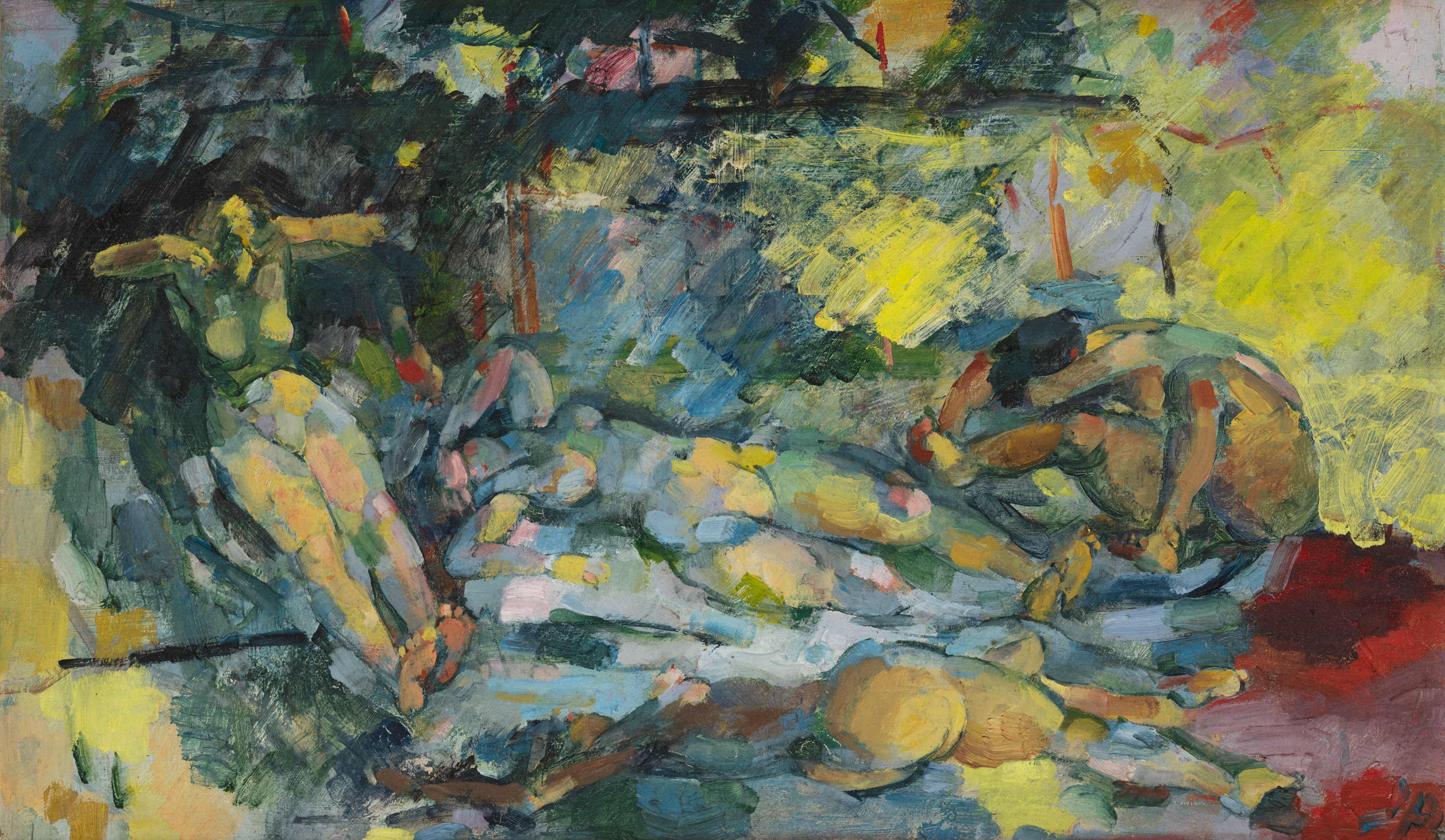 Through the artistic turbulence of the 1950s, a gaggle of devoted students, including Peter Upward, William Rose and most notably, John Olsen, hung on his every word, savoured his humour, and indulged his habit of uttering Delphic maxims. In his meandering art classes, his passion for Tintoretto and Rembrandt was often front and centre, but it was Paul Cézanne whose influence gripped the artist early and wove its way through his life’s work, as is clearly evident in the present example. Passmore’s commitment to the advancement of painting expressed through his teaching helped to rekindle an earlier abstract art movement which had flickered out during the Second World War. The earlier generation of abstract painters were formal and analytical, combining bright colour with geometry. In contrast, Passmore’s approach was freewheeling, lyrical and expressive, while constantly returning to the figure and Cezanne as the armature for new truths and values in painting.