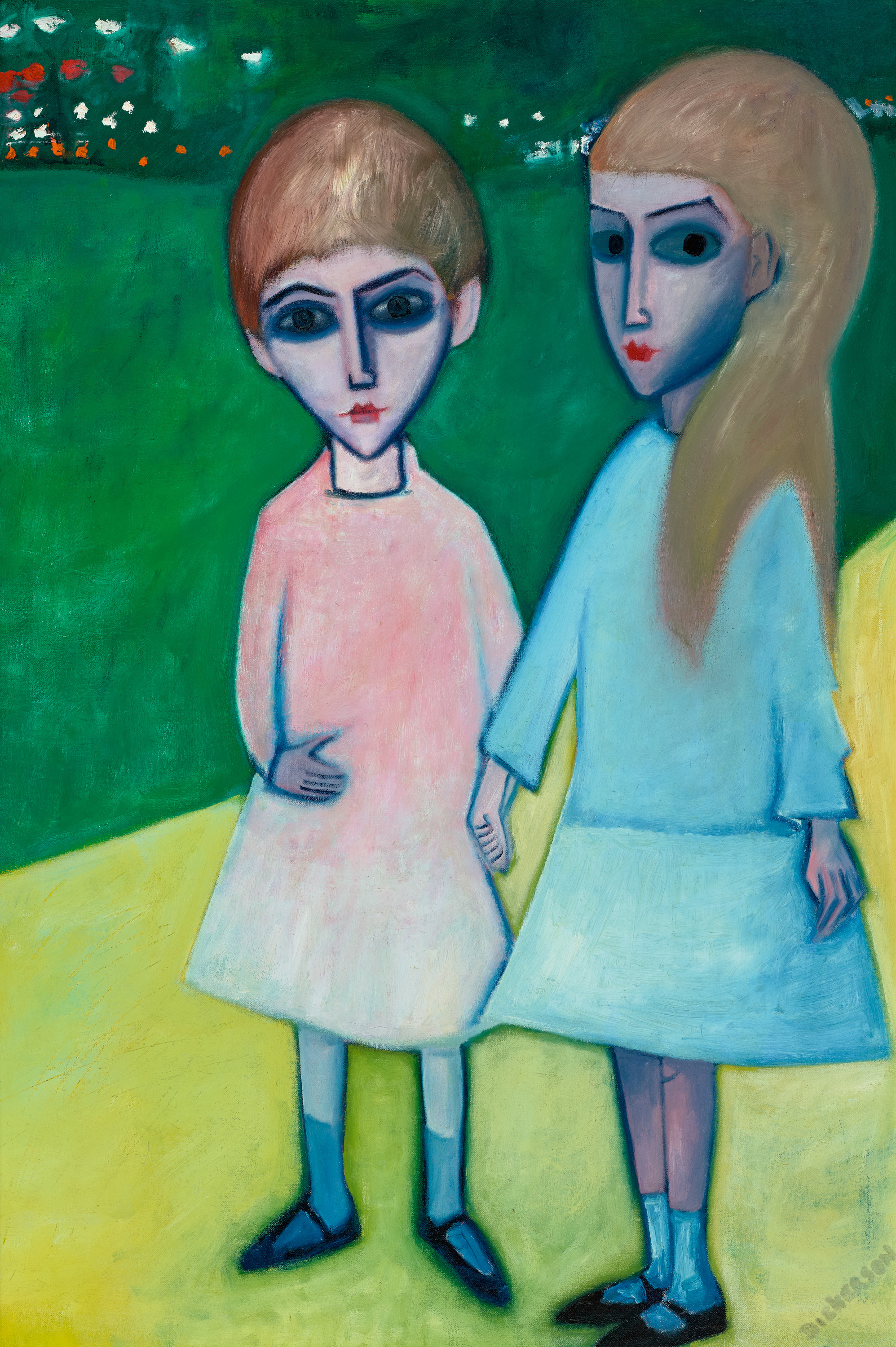 inscribed with title on old label verso: GIRLS IN THE GARDENS