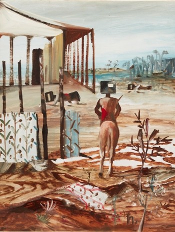 The depiction of the landscape in these paintings was equally important and in some works the figures are almost reduced to being staffage as Nolan’s interest in describing the structure and atmosphere of the country comes to the fore. Conscripted into the Army in 1942, Nolan was posted to Dimboola where he guarded a supply store, but rather than curtailing his artistic development this experience provided him with the opportunity to come to grips with the Australian landscape. Sunday Reed had encouraged Nolan to address the landscape in his work and to seek a modern interpretation of it, and in his paintings of the Wimmera he did just that. Compressing space and distorting perspective in images of dry, open country marked with silos and vernacular rural buildings, he developed a radical and distinctive style that ‘was an intelligent mixture of faux-naif, Cézanne, Van Gogh, chaotic scale, objects devoid of gravity, and the exaggerated shadows of Surrealism, pulled together by the replicated magic of a child’s view of the world; all superbly enhanced by the luminosity of Ripolin enamel paint which he began to use at the beginning of 1943.’9 John Reed identified the significance of the landscape element within the Kelly paintings at the time, writing in the Velasquez Gallery exhibition catalogue that ‘Australia has not been an easy country to paint … we have waited many years for a mature statement to cover both the landscape and man in relation to the landscape [and] in my opinion this has now been achieved … and it is a remarkable achievement indeed, necessitating as it has the most sensitive and profound harmony between symbol, legend and visual impact.’10