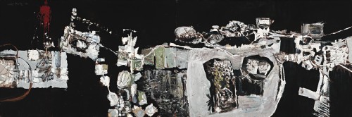 The major examples of Plate’s Graph Segments series are amongst his most important works. The Art Gallery of New South Wales holds Graph Segments, 1961; this work is closely related to the present work in every way. The gallery notes are as follows... Graph Segments, 1961, belongs to a group of paintings produced in the early 1960s notable for their large scale and dynamic application of mellow earth colours, and re-affirm his belief in the employment of randomness and chance in art as practiced by Surrealist artists Paul Klee and André Breton... The work of Carl Plate occupies a central, almost classical position between the liners and tonalists. Tone is the architectonic base of his work. Line is reduced largely to crisp edges which articulate a shallow space and maintain the surface tension across the pictorial structure. Colour is muted to greys, pale blues and olive greens, with an occasional warm accent. By this means Plate seeks to figure forth in plastic form his imitations of the non-visible. And in his work, as in that of Rose [William], the French heritage is notably present; behind him there stand such artists as Braque, the later Matisse, Hans Arp even, in his feeling for weight and placement, in the delicate confrontation and articulation of the elements of the compositions.2