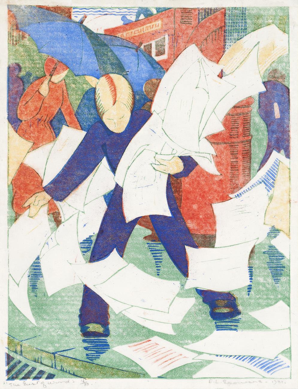 Exhibition of Linocuts, Everyman’s Lending Library, Melbourne, 10 – 24 December 1930, cat. 25 (another example, as ‘The Newsboy’)