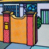 Curated by Timothy Morrell, then Curator of Contemporary Australian Art at Queensland Art Gallery, Brisbane, Arkley’s The Home Show at Venice comprised three major bodies of work – Residential Subdivision, 1994 – 99, Fabricated Rooms, 1997 – 99, and Outside – Inside – Out, 1995, which filled, and seemingly reflected, the low-slung Australian beach house aesthetic of Paul Cox’s Pavilion.1 On entering the space, nine of the artist’s signature paintings of house exteriors were hung to form the imaginary streetscape of ‘Residential Subdivision’, brought together, as the exhibition unfolded, with the door-sized panels of Outside – Inside – Out, whose abstracted designs were inspired by the patterns of domestic security doors and fly screens.2 The exhibition culminated in the multi-panelled interior scene of Fabricated Rooms, with its characteristic use of explosive colour and its slightly off-kilter, tessellated sense of space, as the viewer moved from left to right, effectively entering, and exploring the rooms of a strangely empty home. As John Gregory has noted, ‘In conception and design, the show was the culmination of Arkley’s suburban enterprise, fulfilling a long-standing ambition to transform an entire exhibition into a stylised simulacrum of an Australian suburb …’3