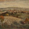 The light in Hills of Bathurst evokes the living past – of Australia’s oldest inland settlement, where gold was first discovered, rich in beauty and memories. His first major painting of the area was the evocatively spellbinding Evening on the Bathurst Hills, 1936 in the collection of the Art Gallery of New South Wales, Sydney. It is the soft evening light when nature enticingly attires herself in gentler robe as encroaching shadows tempt and tantalise. Over the following years he painted the Bathurst region at various times and seasons. Evening Landscape, Orange, 1943, also in the Sydney Gallery’s collection, suggests that it was painted from a spot near to the painting on offer.3 Related in time and mood, they share a breadth of sky, easy horizon line, and scattering of houses, all handled in a similar colour scheme. The scene must have appealed greatly to Rees for in 1944 he painted September Landscape, Orange. Betraying even more affinities with our painting, its season of rebirth and renewal is more pronounced through the enveloping golden light.4