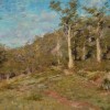 Significantly, McCubbin named their family Macedon home 'Fontainebleau' after the forest in France, neighbouring the village of Barbizon and its school of plein air painters, and especially McCubbin's favourite, Corot. Devoting himself to painting in the open air, he even dug a trench in the ground so that he could reach the canvas tops of The Pioneer. Now in the middle years of his art, his style became broader and vision fresher in response to painting out-of-doors directly from the motif, encapsulated in the present Hillside, Macedon, 1904. The smoothly painted, tight style of earlier years gives way to the freer, textured brushstroke and palette knife – transitions which are clearly visible in the comparison of Macedon landscapes such as A Bush Scene, 1903 (Art Gallery of Ballarat), with two works closely related to the present, namely The Clearing, Mount Macedon, c.1904 and Sunny Glade.5 In these later paintings, the brushstrokes are applied with such verve that they seem to dance in spontaneous response to the scene. As with Sylvan Glade, Macedon, 1906 (Bendigo Art Gallery), the focus of attention has now moved from the figure to capturing the enchanting play of light, and the atmospheric qualities of his beloved bush at Mount Macedon. Indeed, as The Age writer remarked his review of McCubbin’s solo exhibition at the Athenaeum Gallery, Melbourne in 1904, ‘The Hillside, Macedon, is a fine rendering of the radiant atmosphere of the mountains; the composition has a fine diversity, and the foreground, in its harmony of tone, is a delightful piece of colour… in what is one of the most notable of the one-man shows that have been in Melbourne.’6