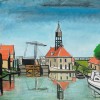 From 1952, Buffet enjoyed the artistic freedom of producing yearly thematic suites of paintings at his representative gallery in Paris, Galerie Maurice Garnier, with subject matter ranging from the allegorical and historical (Passions of the Christ, 1952 and Joan of Arc, 1958) to more broadly appealing subject matter (Snowy Landscapes, 1976, and Flowers, 1979) and many based on the artist’s recent holiday destinations, both near and far: Churches of France, 1969, and Peking, 1996. Closely related to works in Buffet’s 1986 solo exhibition at Galerie Maurice Garnier, descriptively titled Les Pays-Bas (The Netherlands), Hindeloopen, en Frise, presents with detached rigour a large, crisp and famous view of the manual lock and drawbridge of the medieval town of Hindeloopen, in Friesland in the north of the Netherlands. Other paintings from the Pays-Bas suite included kitsch, timeless and emblematic scenes of windmills and friezes of canal houses and bridges in Amsterdam.5