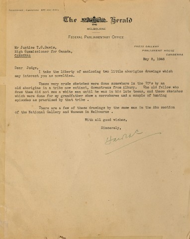 Mr Justice T. C. Davis, High Commissioner for Canada, Canberra, a gift from the above in May 1946
