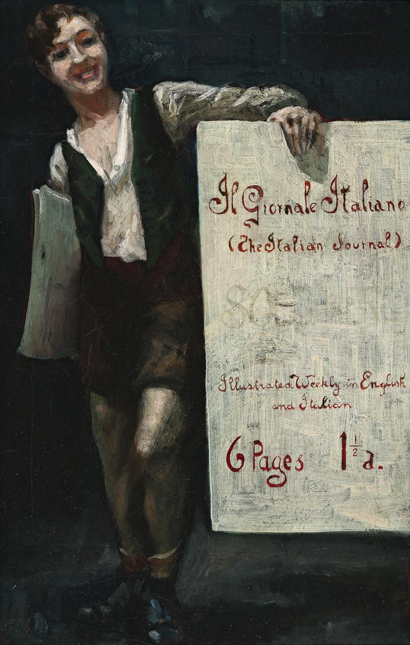 The attribution of this painting to Dattilo-Rubbo is likely considering strong stylistic and compositional similarities to other works and the artist’s connection to the Italian community. The date of c.1932 – 33 is based on the six page format of Il Giornale Italiano which appeared in those years.