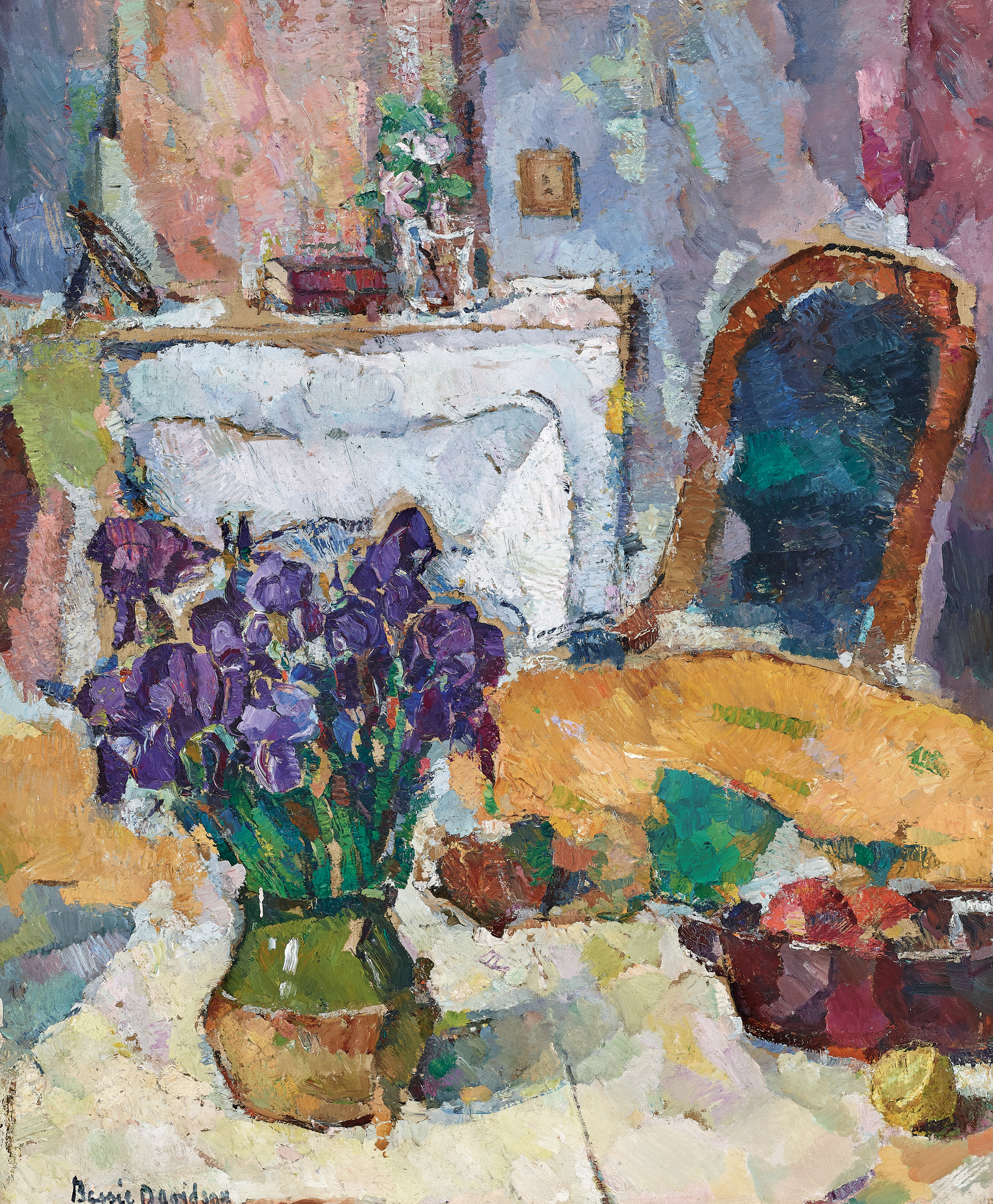 Adelaide-born Bessie Davidson spent most of her creative life in Paris, absorbing the elegance and sophistication which we associate with the French capital and manifesting it in her art. It touches her landscapes, and especially the interiors and still life paintings in which she excels- Intérieur being a fine example. Her excellence in this genre was, no doubt, influenced by her earlier association with Margaret Preston (then Rose McPherson), in whose studio she studied from 1899 to 1904. Together, they travelled abroad, Davidson continuing her studies at the Munich Künstlerinner Verein, and in Paris at the Académie de la Grande Chaumière. Although Davidson returned to Adelaide in 1906 and taught for a number of years with Preston, her home became Paris where, from 1910 until her death, her studio was in Rue Boissonade, Montparnasse.