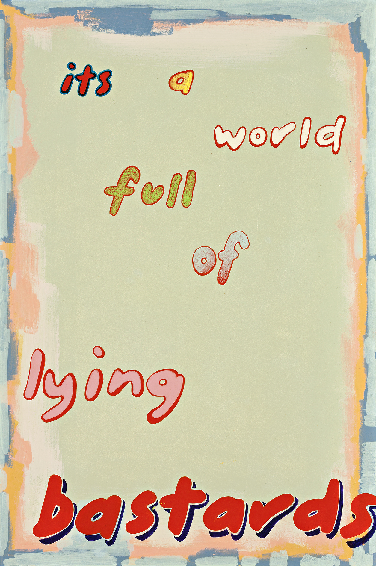 signed, dated and inscribed with title verso: Jon Campbell 2011 / ‘Its [sic] a world full of / lying bastards’ / acrylic & enamel paint /…