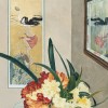 At East Sydney Technical College, Cressida Campbell discovered and developed a strong affinity with the medium of woodblock printing. But it was in 1980, at the Yoshida Hanga Academy in Tokyo, Japan, that she found and adapted a technique of monoprinting from hand painted woodblocks, called Yiban Duose (meaning ‘one block, many colour printing’) into her own dominant pictorial mode. Since the late 1980s, Campbell has exhibited and sold each painted woodblock alongside its unique print. This unusual technique requires her compositions to work harmoniously in both positive and negative. The central subject matter of Japanese Print and Clivias, the eponymous Ukiyo-e print, its reflection and iridescent refractions in a bevelled mirror, provides a challenging compositional feat for Campbell. The artistic conceit of playing with reflections in a medium that is inherently based on printed mirror images shows both Campbell’s technical prowess and sense of humour.