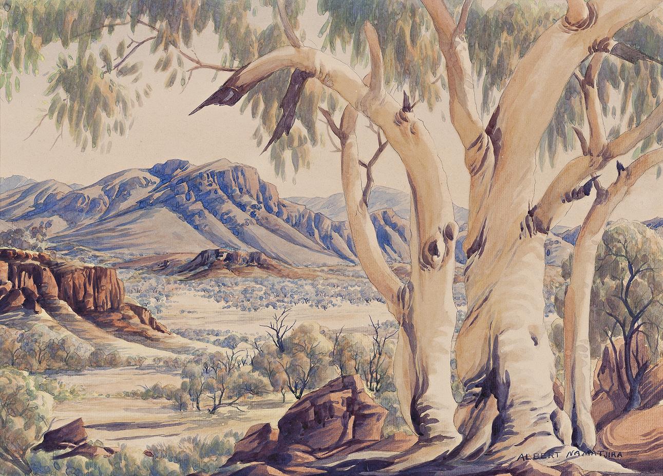 signed and inscribed with title verso: … / Albert Namatjira / Jay Creek Country / 15