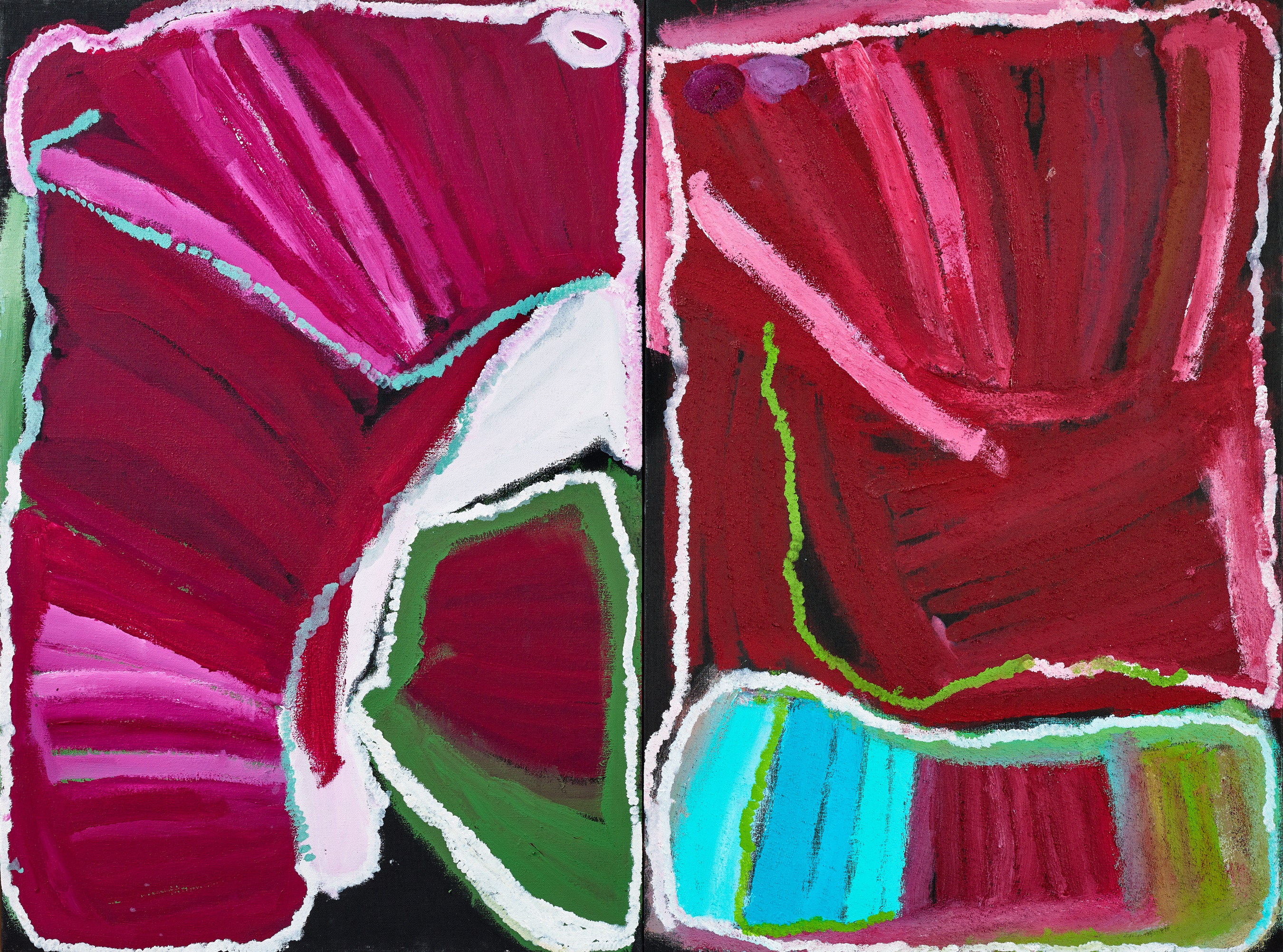 synthetic polymer paint on two linen panels