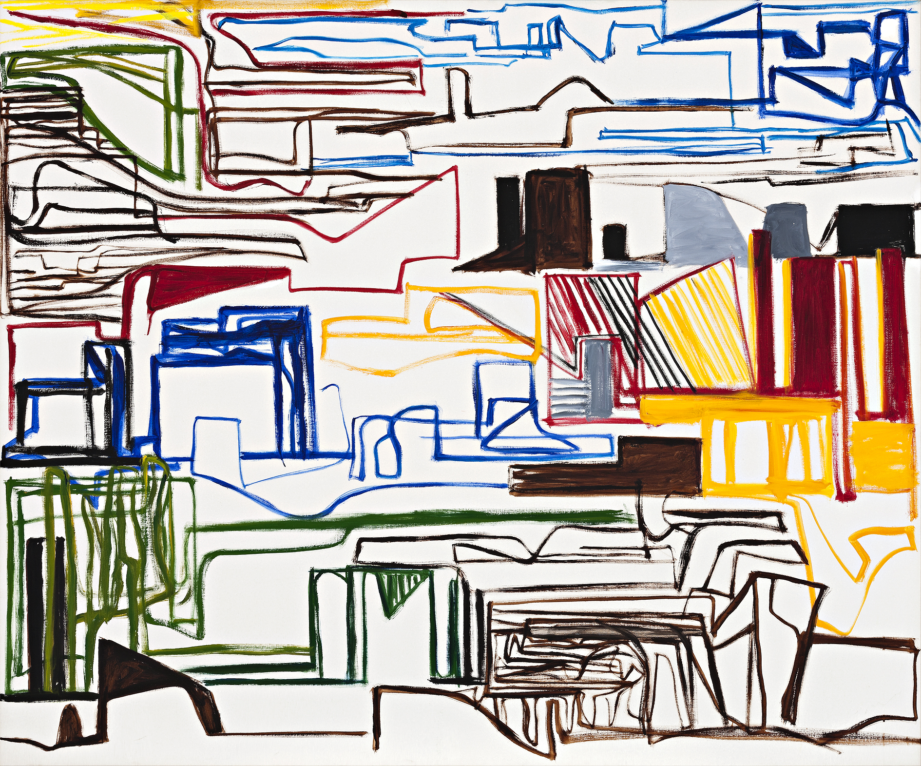 Describing no specific place or object, Landscape Marks no. 10, 1992 imperceptibly swings between ambiguity and familiarity, somewhat akin to déjà vu. One senses that they are acquainted with the setting, yet unable to isolate its exact locality. Concepts of foreground and background coalesce – a compelling trait of the artist’s mature works – as though the viewer is ‘studying a diagram of the thinking mind’.2 Whisson’s world is deconstructed and abstracted, trusting himself and the viewer to access and celebrate the processes of imagination. One only needs ‘an openness to experience, a willingness to go beyond appearances’.3