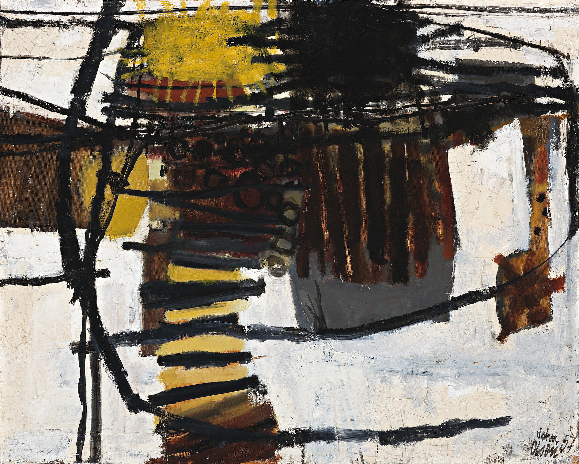 signed and dated lower right: John Olsen 57