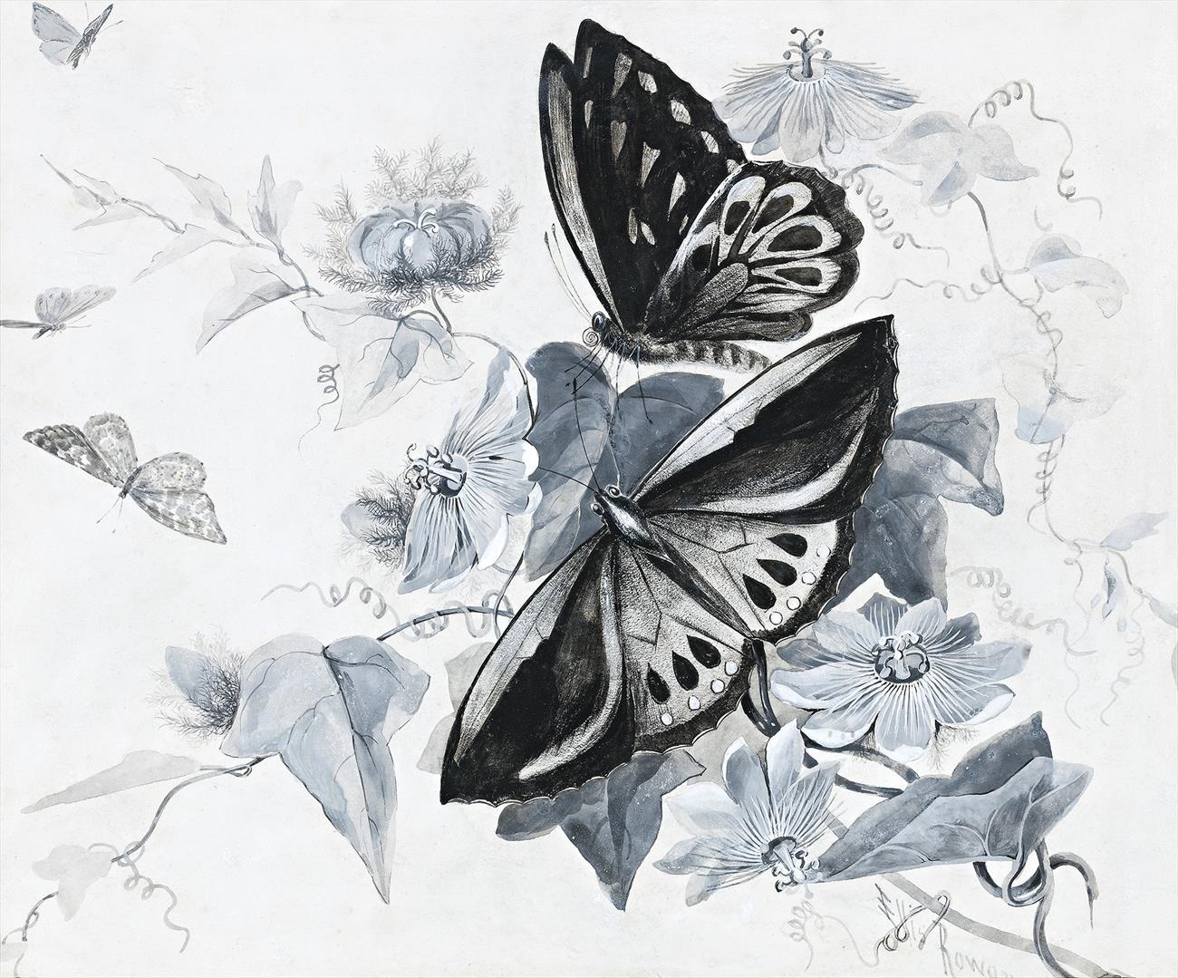 inscribed with title verso: Large black & green butterfly / & native passion flowers of Queensland
