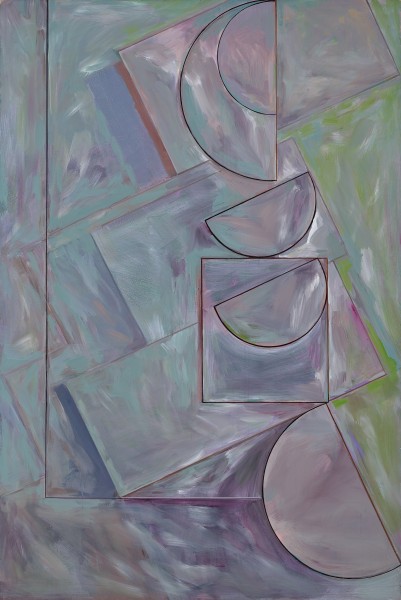 In 1973, Dawson and her husband moved to Binalong, and in 1977 to nearby Scribble Rock, both about an hour north-east of Canberra.4 The Foxy Night paintings were borne out of the location itself. Dawson is untroubled by abstraction and naturalism occurring in a comfortable sequence – for her, they have seldom been opposites or competing forces with one effortlessly following the other. Last Foxy Night, 1979 is similar in style and treatment to other Foxy works in public collections.5 The slipping and cascading poise of shapes are held within a briskly painted surface and muted palette. The soft atmospheric effect seems almost Whistlerian in its nocturnal tonal range. Here we find the synthesis of Dawson’s observation and the feeling for her location, interwoven with her own intellectual and aesthetic disposition.