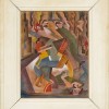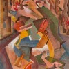 Hinder’s sophisticated technique is fully apparent in Little man with a big gun (Mussolini), with the curves and shapes informed by his in-depth understanding of ‘dynamic symmetry’, a reinterpretation of design concepts based on Egyptian hieroglyphics and Greek pottery.3 Whilst he also found inspiration in Futurism and its English cousin, Vorticism, Hinder did not celebrate the violence of war as they did. What he did admire was their structural form, stating later that ‘I still believe art is design, discipline and control – but most important, design.’4 Technically, his use of the ancient medium of egg tempera (pigment bound by egg yolk) gives the surface of the painting a smooth, translucent finish which perfectly enhances his use of rich colouration. Significant works by Hinder from this period are now mostly found in institutional galleries, and include Commuters – two paintings, 1938 (National Gallery of Australia); Dog gymkhana, 1939, and Eleanor Lange, 1939 (both Art Gallery of New South Wales); and Expansion, 1938 (Queensland Art Gallery | Gallery of Modern Art).