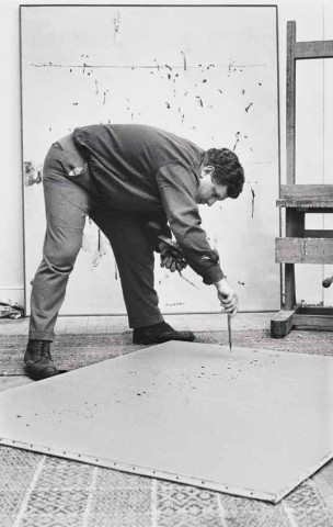 While it can be seen as handwriting – or a kind of personal mark making – calligraphy is a more accurate and authoritative description. In Chinese and Japanese culture calligraphy is an art form of the highest aesthetic consequence and meaning: and we should see Williams in the same light. In the photograph by David Moore, Fred Williams, 1969 (National Portrait Gallery), we see the artist working, not at the easel in the background, but on the floor where the method not only evokes a sense of Pollock or Sam Francis, but with its surface flat, it also emulates Chinese and Japanese artists in its physical execution.