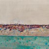 Painted on 29 August 1973, Lysterfield Paddock no. 1 features the broad open landscape divided into three horizontal bands. The lower half of the picture comprises a deep foreground which is painted a brilliant blue-green and enlivened by a series of darker blue-green and earth-coloured daubs representing low, irregular growth. Above it, in the middle-ground, gentle rolling hills sit below a decisive horizon line, while the top half of the picture is devoted to the depiction of the sky, big, clear and luminous, and injecting a palpable sense of light and space into the composition. The hieroglyphic-like marks that Williams used to describe the scrubby growth across the hillside, and the trees lining the horizon, are distinctively his, and typical of what Patrick McCaughey described as ‘his refined method of painting’ which was by this time, ‘as spontaneous as handwriting.’3 Less familiar are the four tall trees, which are lined up along the base of the hillside. White with touches of dark colour, and totally devoid of foliage, they are like sentinels in the landscape. Indicative of Williams’ careful observation of his environment, these trees are also an example of his occasional habit of incorporating details which identify landscape subjects – sometimes viewed during a particular season or time of the day – as specific, recognisable locales, rather than a more generalised view.