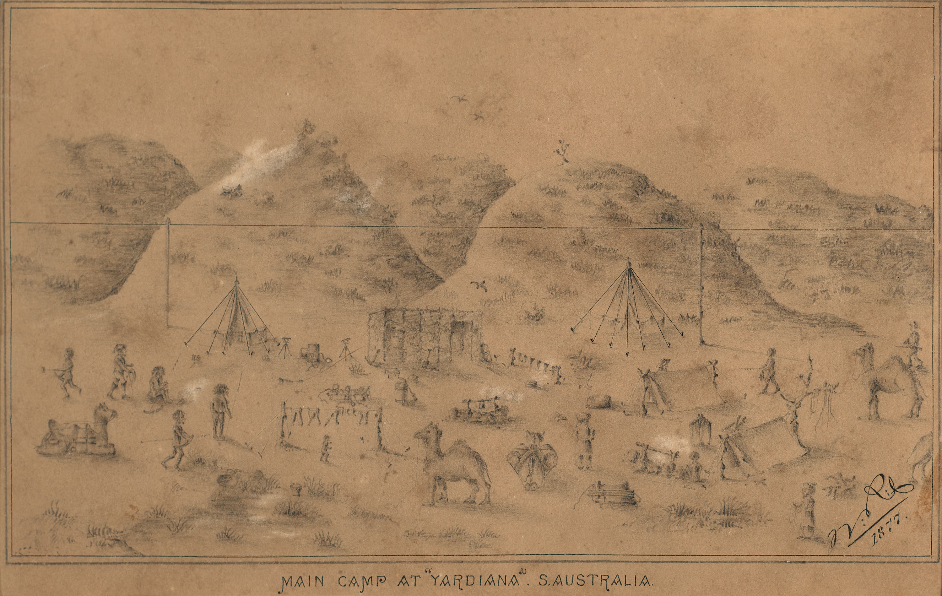 bears inscription below image: MAIN CAMP AT “YARDIANA”. S. AUSTRALIA