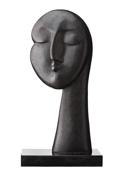 With its impeccable elegance and daring simplicity, Makiko, 1980 illustrates well how successfully Elenberg reintroduced a sense of intimacy back into contemporary sculpture. Betraying strong stylistic affinities with the streamlined female heads of European modernists such as Matisse, Picasso and Brancusi (who in turn were influenced by the aesthetics of African tribal sculpture), indeed the work offers an exquisitely beautiful example of Elenberg’s achievements. In a similar vein to the work of Brancusi especially, any accumulation of detail is here radically rejected to create a pure and resonant form of timeless, classical proportion. Moreover, that the bronze has been polished to sensuous perfection creates an underlying conflict between medium and form that not only echoes the work of his artistic predecessor, but perhaps reflects Elenberg’s own, self-confessed dual personality – the soft and the lyrical with the tough and intellectual.