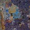 Makura is a sacred place east of Irrunytju. Bill indicates that Makura is the site of a young boy’s initiation ritual hence there is little detail that can be elaborated upon here…. The roundel represents the rockhole Makura, the background, dark blue shapes represent the female relatives who are sitting as part of the initiation business.’