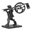 Straddling three-dimensional sculptural practice and two-dimensional trompe l’oeil strategies, these small bronzes are not merely static. When photographed, a certain point of view is fixed, presenting a specific scene. However, when observed in real life, and circumnavigated, they evolve in and out of, a coherent point of view. This deconstructive and vaguely absurdist approach bridges the gap with newer cinematic practices and shows a decidedly contemporary understanding of bronze sculpture.