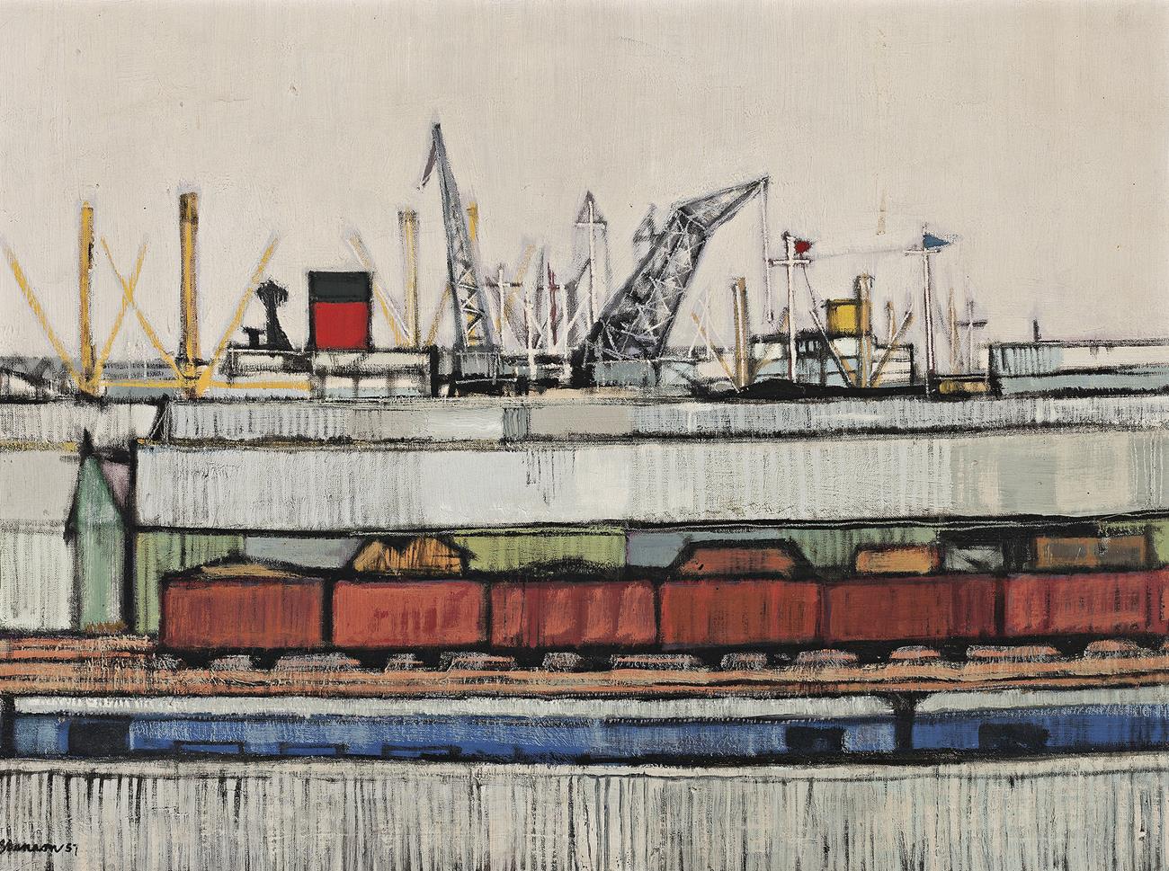 signed, dated and inscribed on frame verso: RAILWAY YARDS 1957 / MICHAEL SHANNON