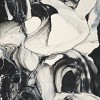 Matter Painting, 1962, is an expansive and organic example of this late style, where opposing forces compete in shallow pictorial space, jet-black enamel seeping into pools of cream paint with marbled frontiers and spattered incursions. In the absence of a clear focal point and the rectilinear format that had hitherto governed Balson’s compositions, the viewer’s eye is free to wander across the surface – a true Greenbergian all-over painting. While newspaper reviews of the time saw parallels with the nascent disciplines of molecular science, as well as space photography,2 the ripples and spatters inherent in Matter paintings can subjectively seem to coalesce into a wide range of organic forms. The ebbs and flows of their state of flux seem to breach the confines of the artist’s own grey wooden frame. Surprisingly, as opposed to using the smooth and varnished face, the artist has used the reverse side of a Masonite sheet for this painting, its tooth providing resistance against the flow of paint and a delicate foundation of texture beneath its veined surface.
