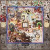 Overwhelming both in their scale and myriad cast of art world identities, Davila’s elaborate tableaux from 1989 (including Retablo, Hybrid and The Barricade) are undeniably considered among the most powerful of his career – and certainly, Monogram is no exception. A direct parody of the ‘combine’ painting of the same name by Robert Rauschenberg in which the American artist juxtaposes the taxidermied head of a goat (here Davila employs a kangaroo instead), indeed Monogram illustrates well Davila’s use of mimicry as a strategy of reinvention through the recombination of cultural forms. In the same vein for example, Davila comically conflates Brack’s signature ballroom dancers with his feted portrait of Fred Williams in the collection of the Art Gallery of South Australia; performance artist Mike Parr appears with his head anamorphically distorted; and fellow South-American social realist, Antonio Berni, is referenced in the figure of Juanita Laguna (a fictional character from his collaged narratives condemning the poverty engendered by neocolonialism in Argentina) – to list but a few of the many allusions to the ‘art economy’ incorporated by Davila as ciphers to be decoded. Moreover, the dismantling of pictorial unity that occurs through the collision of so-called ‘high art’ with mundane imagery here (Australian memorabilia from literature and advertising, kitchen linen reproductions etc) not only forces the viewer to question the hierarchies applied to images, but serves to undermine the power historically accorded to the artist as the originator of art’s fixed meanings, and ultimately, to de-stabilise the Western tradition as the dominant cultural narrative.