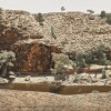 Paying homage to the breathtaking ancient landscape of Mutawintji (or Mootwingee) National Park, 130 kilometres to the north-east of Broken Hill in New South Wales, Mootwingee was inspired by the artist’s travels in the area after he was invited by the Director of the Broken Hill Art Gallery at the time, Michael Pursche, to present a lecture in November 1986. Derived from the Aboriginal word meaning ‘green grass’, Mootwingee holds dual significance in both traditional indigenous culture and the history of nineteenth-century white exploration; as elucidated by Alan Moorehead in his moving recount, Cooper’s Creek (1963): ‘Even today it’s an extraordinary place, for there is much evidence here of the existence of an inland sea in prehistoric times; marine fossils are found, and the conglomerate rock is filled with pebbles that appear to have been formed by the action of rough waves… For the blacks this was a sacred place. They came here for their circumcision rites and other tribal ceremonies and in the over-hanging caves they made drawings and rock carvings.’8