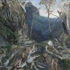 The site known as Tallanbanna, within the Springbrook National Park, is well known to Robinson. He has chosen the area as the subject for several major paintings including, Springbrook with Lifting Fog, 1999, and Twin Falls and Gorge, 2000 both held in the collection of the National Gallery of Australia. The significance of the area, as the place where the eucalypt forest meets the ancient rainforest, is very important to the artist. The hoop pines which form much of the rainforest are living relics of the Jurassic Age and are amongst the most primitive conifers. Threading their way through the forests are the creeks and rivulets; the sleeping giants, which over millennia have formed the canyons, cliffs and waterfalls bringing scale and grandeur to Robinson’s majestic Landscape paintings.