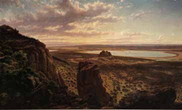 7. Nicholas Chevalier, Mount Arapiles and the Mitre Rock, 1863, National Gallery of Australia. On his visit, von Guérard looked out for Chevalier’s vantage point for both this work and View from Mount Arapiles, 1863, National Gallery of Victoria.