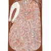 As Mawurndjul relates above, Ngalyod resides in the waterholes and water courses. Waterlilies growing around their edges may indicate the presence of Naglyod and Kuninjku are careful not damage the lilies or disturb the still bodies of water so not to anger the spirit. The Power of Nagalyod is evident in Ngalyod, Rainbow Serpent, 1999, the profile of the serpent’s head is clearly distinguished in vivid white clay to the top left of the bark, its teeth reduced to a series of chevrons, the head bordered by shimmering fields of ochre rarrk that spreads out to the corners. Energy radiates from the painting, indicating the presence and potential power within that is both life giving with the rejuvenating rains of the annual monsoon and at the same time threatening with the destructive power of storms.