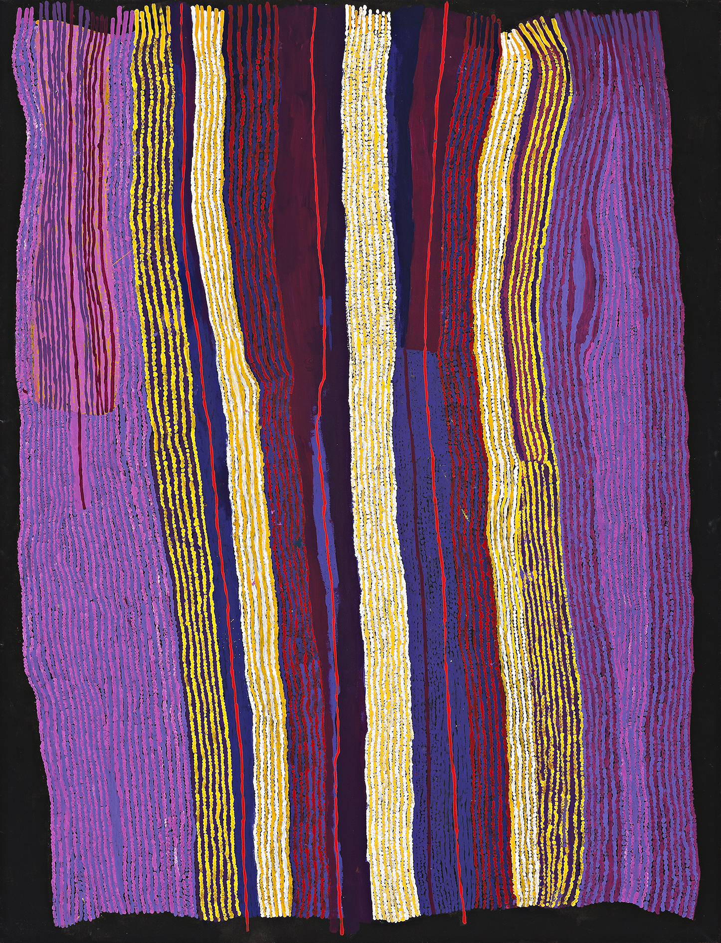 This work is accompanied by a certificate from Tjala Arts which states: ‘In this painting Ray has depicted his country (also known as Ngayukungura). The different colours and designs represent variations in the landscape.’