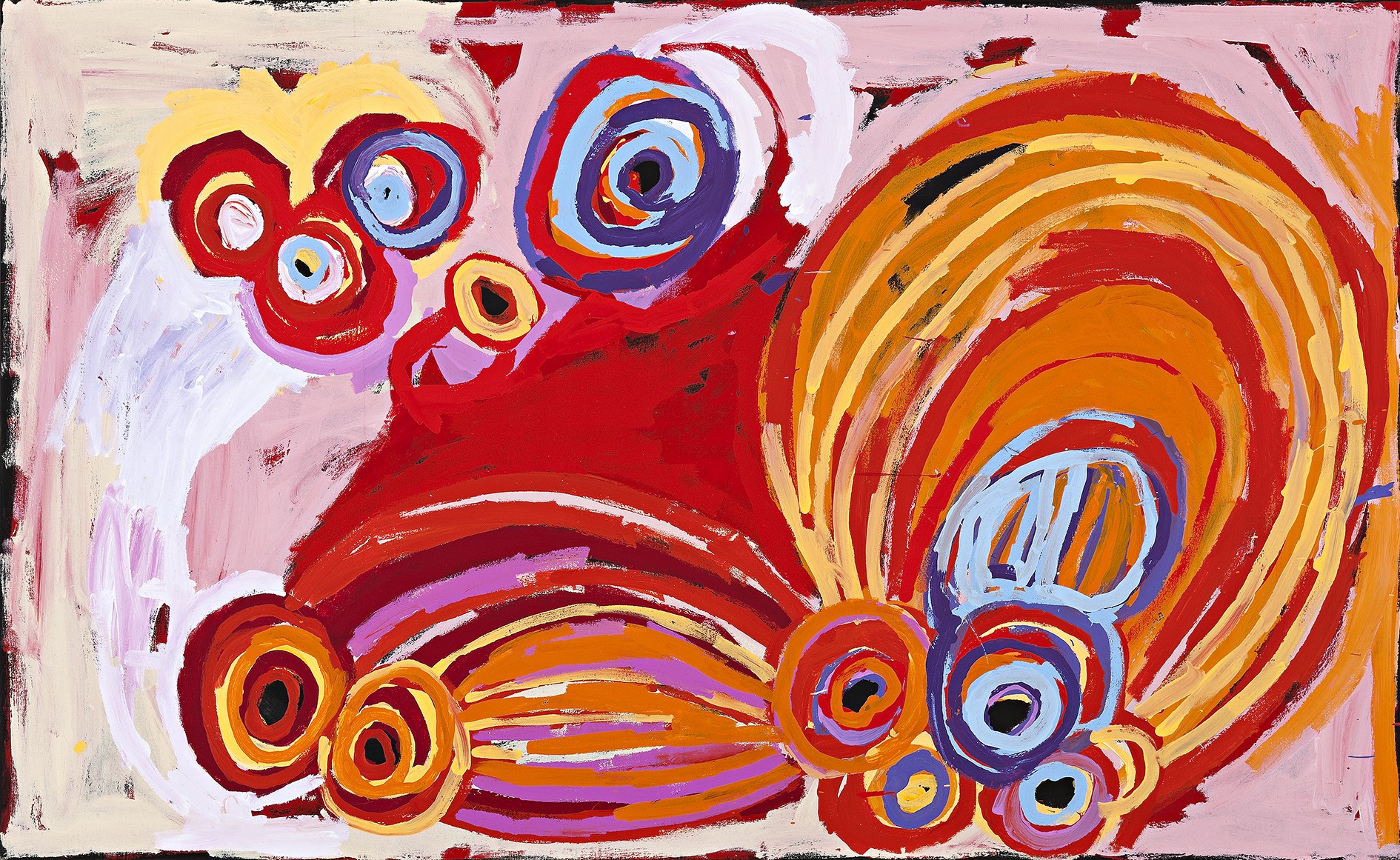 This work is accompanied by a certificate from Tjala Arts which states: ‘In this painting Barbara has depicted her country. The different colours and designs represent variations in the landscape.’