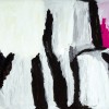 A monumental recollection of her homeland on the south-eastern corner of Bentinck Island, Ninjilki, 2008 records country held dear by Gabori and her family. Distinguished by a permanent freshwater lagoon, it is a place where she remembered catching barramundi, or scooping up fresh water in baler and trumpet shells.2 A large sandy bay joins this stretch of coast to Barthayi, in the south and to the east, a long rocky spit creates safe water where Dugongs proliferate. In 2008, following the Kaiadilt land rights victory, an outstation was established here, often referred to as ‘main base’ where Gabori and her family returned to when possible.3 Here opaque layers of milky white pigment cover a soft yellow base, interspersed with strong vertical crevasses of black and a burst of vivid pink to the upper right. Gabori’s strong gestural mark-making, is an expression of her love for the landscape of her country but also belongs squarely in the realm of contemporary painting.