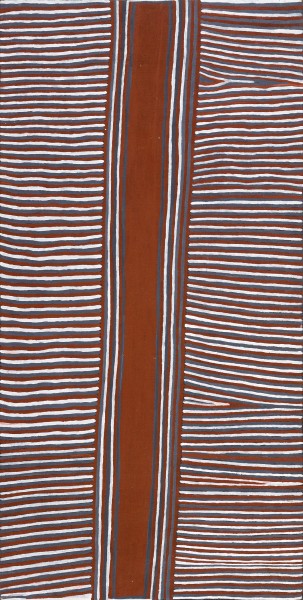 This work is accompanied by a certificate of authenticity from Papunya Tula Artists which states in part: 'The centre panel in this painting represents the site of Nyunmanu to the east of the Kintore community. This site is associated with the Dingo Dreaming. In mythological times a mother dingo lived here with her puppies. She hunted in the surrounding area for food to feed her young.’