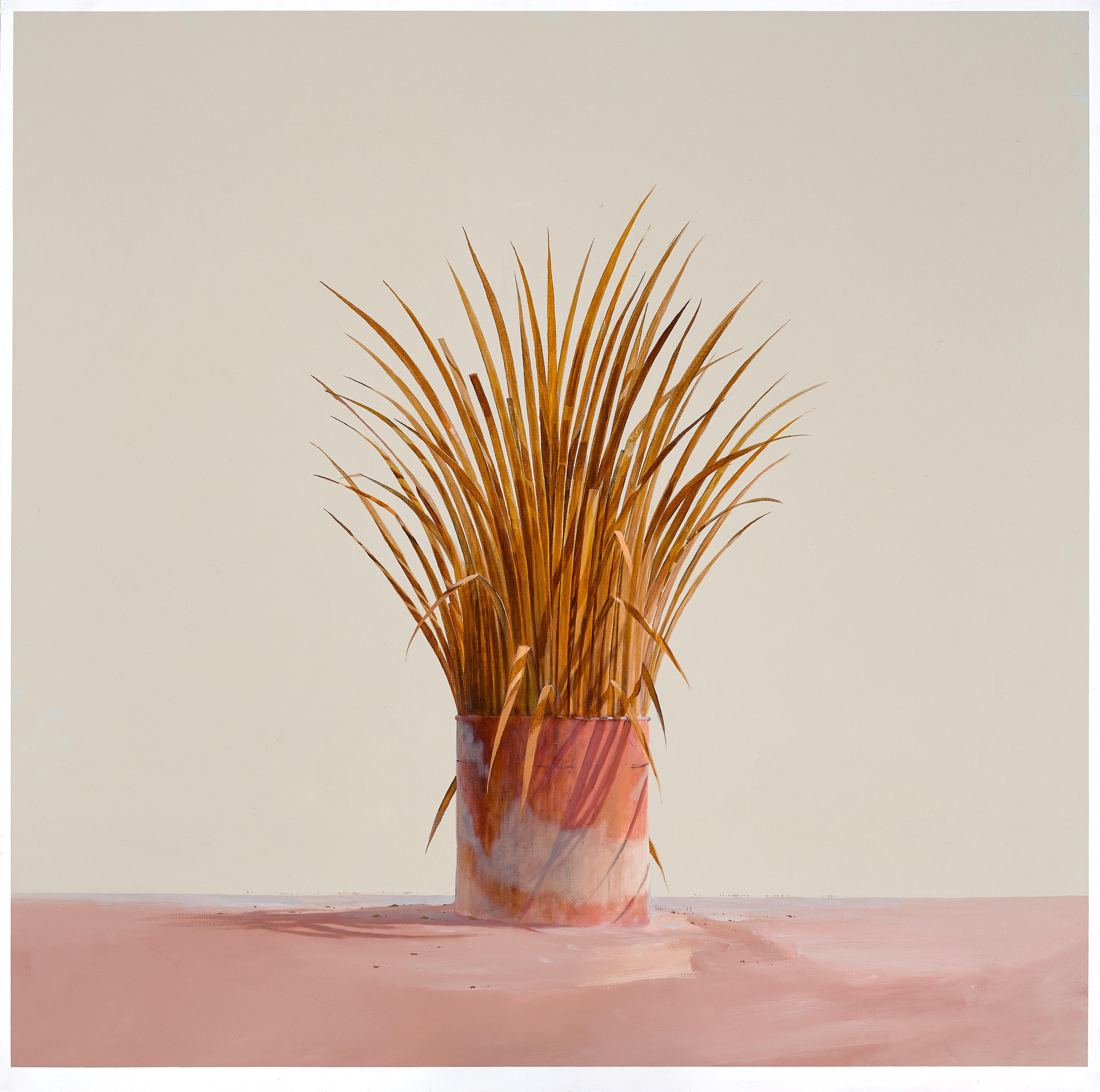 ‘One of the compositional features of 1960s American Pop Art from which emerges the New Realism of the 1970s was the use of single icon images centrally places and isolated within the canvas to emphasise the ‘essence of the object’. Warhol’s paintings of soup cans elevated an everyday banal object to the states of a contemporary archetypal icon. Storrier… here employs a centrally placed image… yet although appearing to accurately render the appearance of the object rather than trying to distil the essence of the object/image, [he] nevertheless creates a surrealistic, unreal image. He has painted numerous desert landscapes in which the intense desert light bleaches out the colour and the shadows create almost abstract patterns. These deserts often have an implied narrative with unexplained relics, monuments, and enigmatic environmental curiosities. In Camp II [also known as Outback Garden, 1979] the can of weeds exists unexplained in an open empty desert and becomes a vehicle for patternmaking. There is an element of intriguing mystery in how these weeds came to exist in this can, for with their elegance they resemble a floral arrangement, however the rusted can suggests that they were mainly the result of water collecting in the discarded utensil.’1