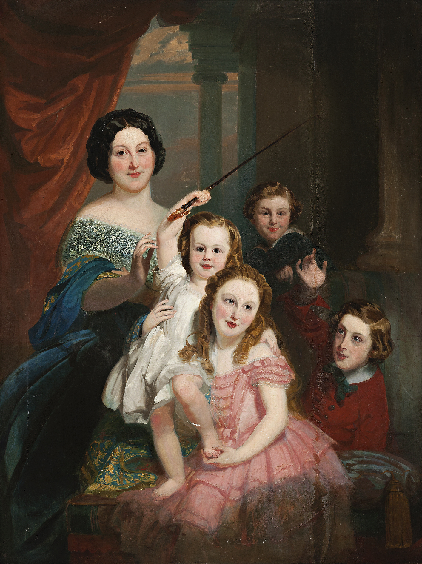 The Pair of Portraits of Samuel and Rosetta Moses with Children, c.1855–56, have previously been dated to 1855 by Michael Walford (1924–2015), the great-grandson of Samuel and Rosetta. The identity of the children in each painting was also provided by Michael Walford in 1997, but may not be entirely correct. Assuming the date of 1855 and consistent with Michael Walford’s identification, two of the children accompanying Samuel Moses (age 48) would appear to be Clara (age 18) and Ernest (age 7); three of the children accompanying Rosetta Moses (age 35) would appear to be Alice (age 8), Louis (age 12) and Edward (age 9).