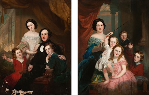 These large scale and ambitious family portraits are rare visual records of the Moses family, eminent residents of Hobart Town during a significant period of colonial development.