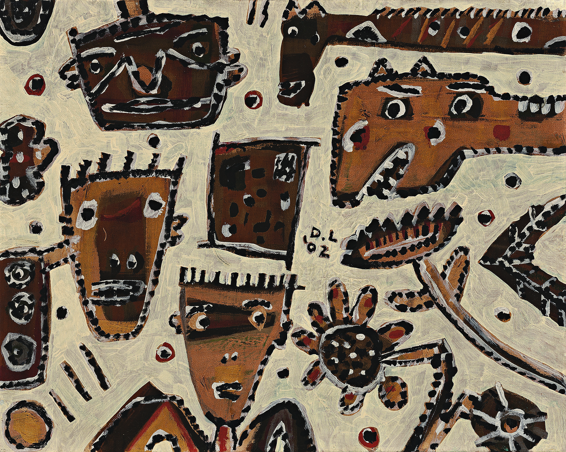 signed, dated and inscribed with title verso: “the plot” / David Larwill / 2002