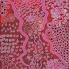 As they continue to travel across the country they are involved in a range of actions and events that have given rise to the geographical and mythological landscape of the Spinifex Country. Along this track made by the men from Pukara are other stories that come into play within this painting. To the south a large group of WatiKalaya (Emu men) are travelling on initiation business down through Ilkurlka meets the WatiKutjara story although the Emus know the snakes are busy and leave them alone. The Emus are eating mingkulpa (native tobacco).’