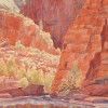 'To our amazement we found a magnificent gorge of many colours, and in the bed of the creek were beautiful pools of water, gem–like in quality, reflecting the high red walls; and ghost gums clinging to the rock faces. The pools were set among rocks of pastel pinks, greens, purples and yellows, truly a colourist’s paradise, of which one could not grow weary. One has only to linger in this gorge to witness the most unbelievable colour effects, produced by the play of sunshine reflected from one wall face of rock to another in shadow'.2