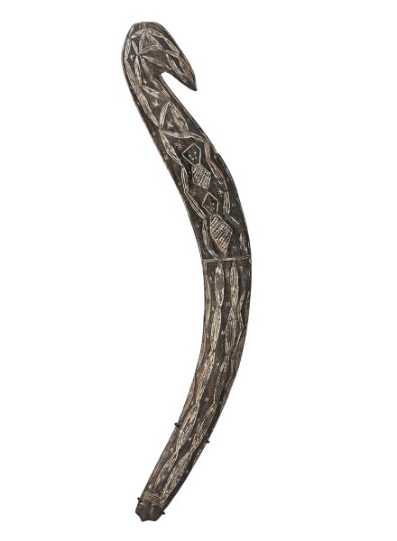 carved hardwood filled with natural earth pigment