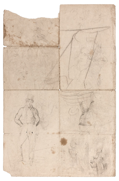 Another intriguing inclusion here is the pencilled-in title “Nouvelle Hollande” at the top. Many of the Le Havre studies have a similar pencil title, which may have been meant as a way of visually tying all of the material together, but was not used in the finished plates.
